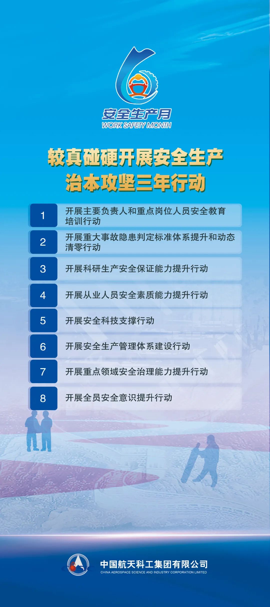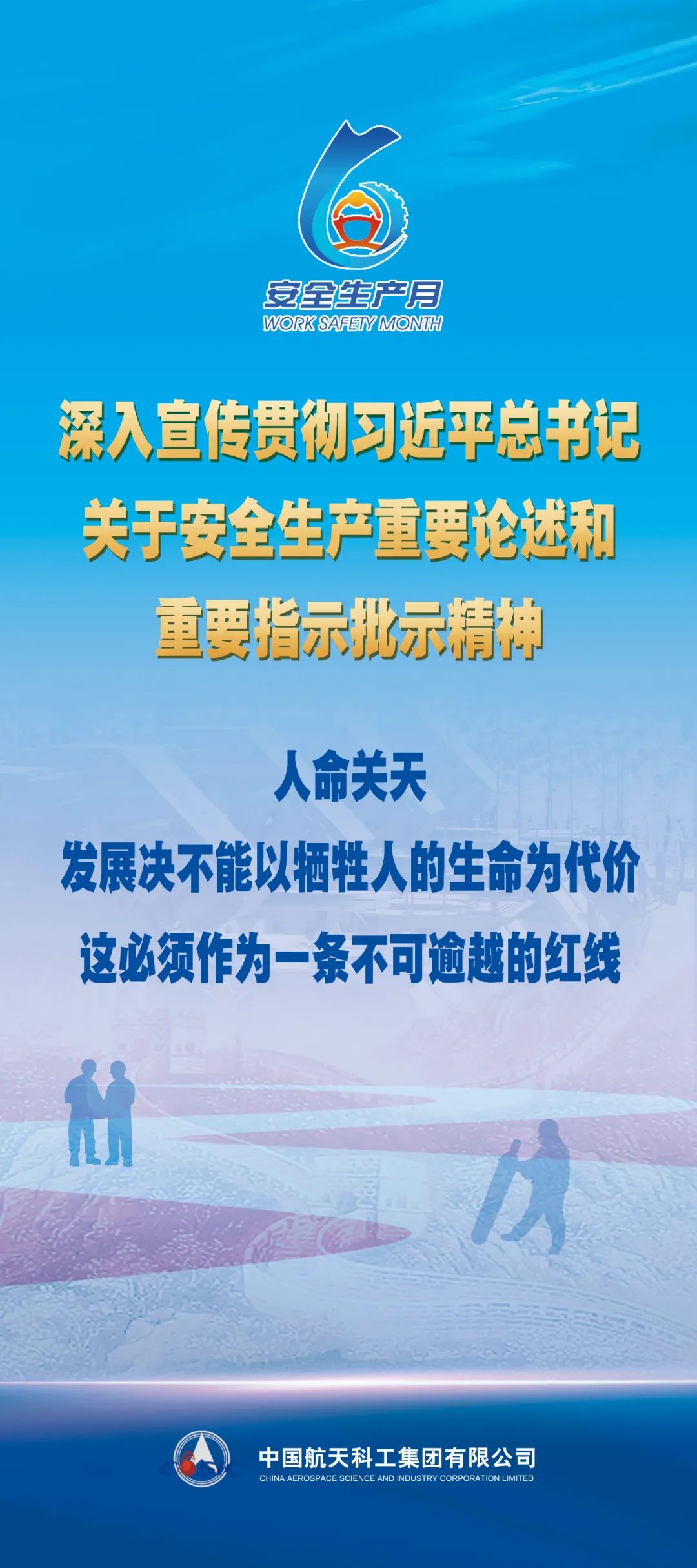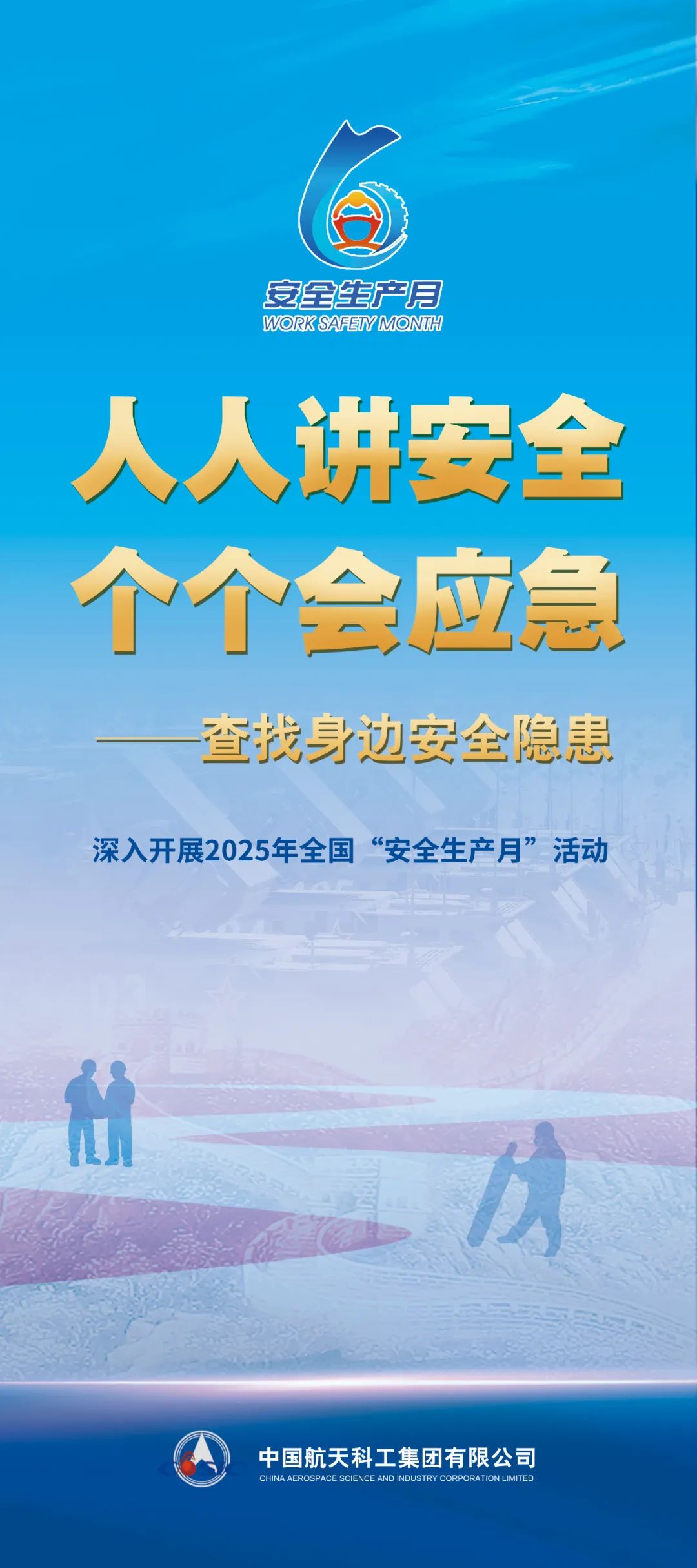 今年6月是第24個全國“安全生產(chǎn)月”,主題為“人人講安全、個個會應(yīng)急——查找身邊安全隱患”,6月16日為全國“安全宣傳咨詢?nèi)铡薄=?,中國航天科工集團(tuán)有限公司印發(fā)通知,對在全系統(tǒng)開展好2025年全國“安全生產(chǎn)月”活動作出安排部署。