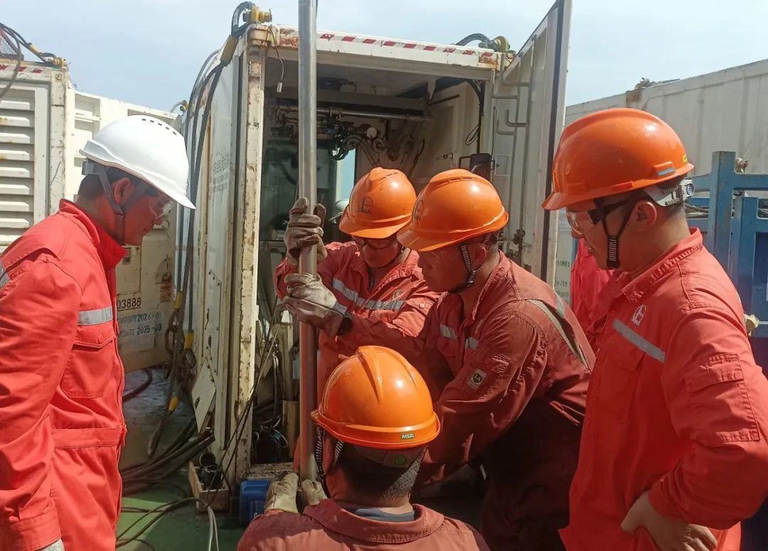 為確保正式施工萬無一失,凱山石油團隊選用與南海平臺安置的同型拖撬、同長同性能的電纜進行配接,反復(fù)測試通訊性能,完成精細準備。同時,提前協(xié)調(diào)備用儀器調(diào)用,安排市場部人員學(xué)習(xí)相關(guān)技術(shù)原理、現(xiàn)場操作及故障處理方法,做好應(yīng)急處置準備。