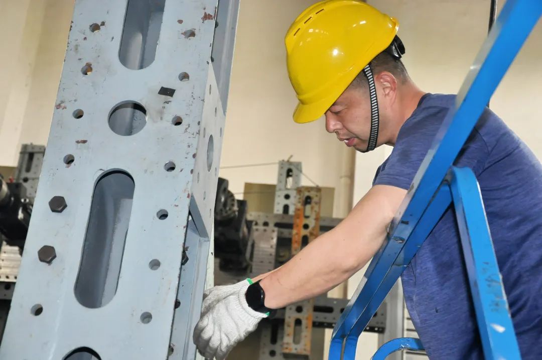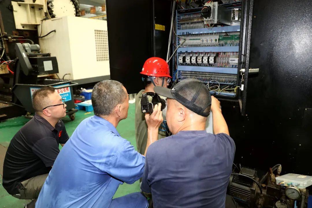 7月9日,氣象臺(tái)發(fā)布高溫橙色預(yù)警。炎熱夏季,正是設(shè)備問(wèn)題高發(fā)之時(shí),險(xiǎn)峰公司機(jī)動(dòng)保障部全力保障設(shè)備正常運(yùn)行,機(jī)修工老張和小蘇正與設(shè)備廠家人員共同協(xié)作維修著故障設(shè)備。(圖文/張玉蓮)