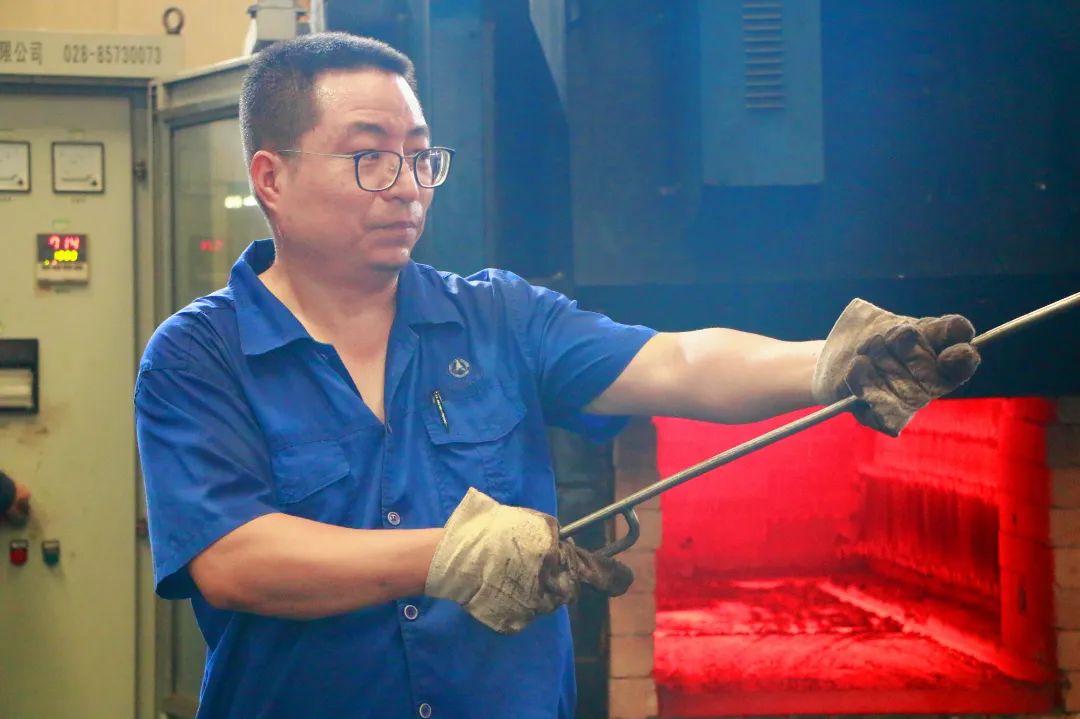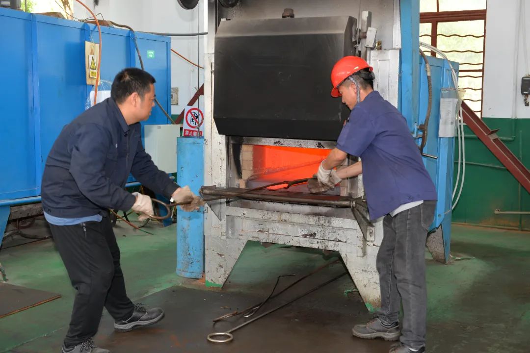 近期,生產(chǎn)任務(wù)繁忙,紅林公司的熱處理車間開(kāi)啟“燒烤”模式。正火、退火、回火、淬火……工人師傅們嚴(yán)格按照工藝要求進(jìn)行熱處理,確保產(chǎn)品性能符合要求。圖為熱處理班組師傅正在檢修加熱爐。(圖文/張旺)