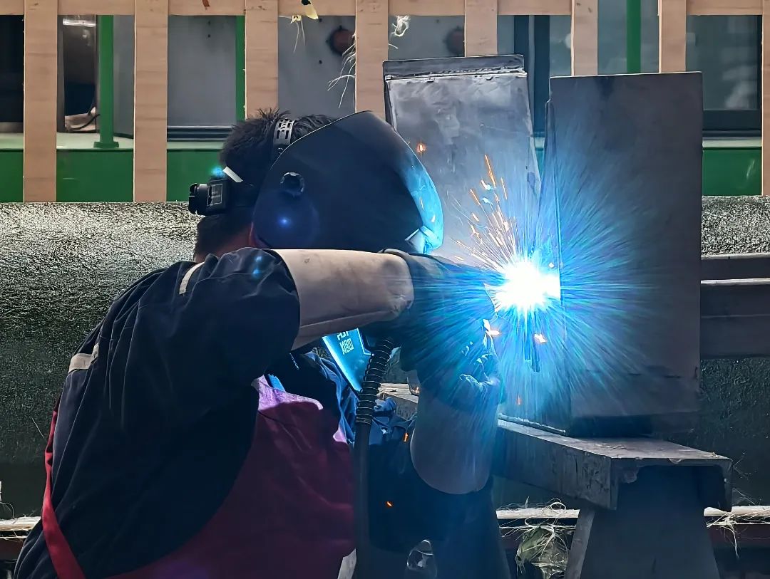 當(dāng)前,長(zhǎng)征公司廠房?jī)?nèi),機(jī)器轟鳴與高溫疊加,焊槍火花飛濺,焊工師傅全副武裝,化身“鎧甲勇士”,以焊槍作筆,用熱浪為墨,爭(zhēng)分奪秒趕制任務(wù)訂單。(圖文/李玲)