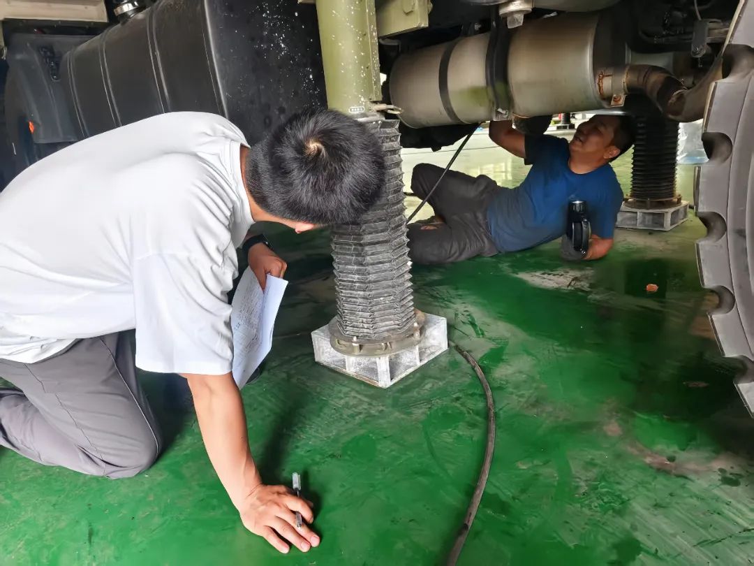 近日,為確保一項(xiàng)目維保工作按標(biāo)準(zhǔn)推進(jìn)、按時(shí)完成,微電院設(shè)計(jì)師駐守現(xiàn)場(chǎng)。走進(jìn)車間,設(shè)計(jì)師細(xì)致核查外協(xié)操作步驟,全程把控維保質(zhì)量,有序推進(jìn)各項(xiàng)工作。圖為設(shè)計(jì)師與外協(xié)人員對(duì)底盤(pán)進(jìn)行維保工作。(圖文/張文杰)