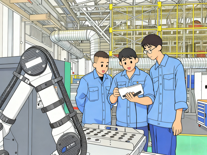 產(chǎn)品加工時(shí),不同刀具需要頻繁切換,手工換刀費(fèi)時(shí)費(fèi)力,生產(chǎn)效率受滯。青年車工小張?jiān)谟^看協(xié)作機(jī)器人視頻時(shí)受到啟發(fā),在車間主任和師父的支持下,一臺(tái)“雙料盤機(jī)器人”落戶車間。作為機(jī)械制造自動(dòng)化專業(yè)的畢業(yè)生,小張憑借專業(yè)基礎(chǔ)和鉆研精神,鉚足了勁要“專業(yè)對(duì)口、事半功倍”,啃下了自主編程調(diào)試的“硬骨頭”,讓機(jī)器人靈活適應(yīng)多樣化生產(chǎn)需求。