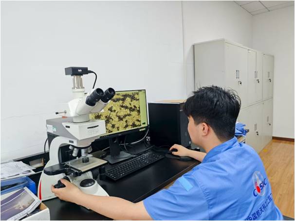 在相對(duì)安靜的金相制備與分析室內(nèi),則是另一番“于無聲處聽驚雷”的景象。金相組員小天正在顯微鏡下經(jīng)歷著一場更為精細(xì)的“尋微”之戰(zhàn)。經(jīng)過嚴(yán)謹(jǐn)打磨、拋光、腐蝕的樣品被逐一置于高倍顯微鏡下。小天伏在目鏡上,全神貫注,仿佛要將整個(gè)身心都融入材料微觀世界。他緩慢而精準(zhǔn)地旋動(dòng)調(diào)焦旋鈕,目光如最精密的探針,在馬氏體的森林與奧氏體的沙漠間反復(fù)巡弋,不放過任何一絲組織異常的蛛絲馬跡。寂靜中,唯有儀器細(xì)微的運(yùn)轉(zhuǎn)聲與客戶間偶爾壓低交流的聲音。突然,他目光一凝,在數(shù)十件試樣中又鎖定了一件組織異常試樣,果斷標(biāo)記,