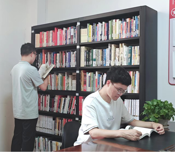 圖書角里,專業(yè)書籍、文學名著整齊排列,技術(shù)部門小李表示:“上次項目遇難題,來這里翻書找靈感,和同事一聊,思路就有了。”